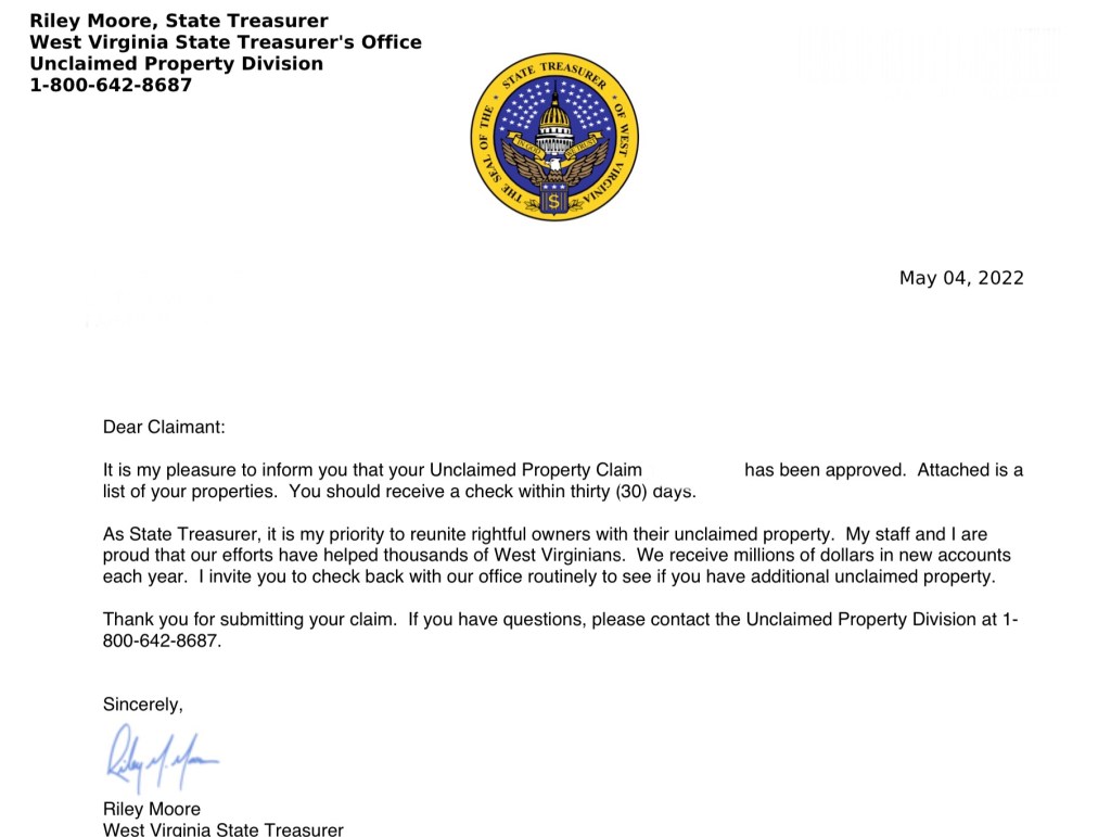 When my son sent me a message telling me that my name was on the West Virginia treasury’s list for unclaimed property, I was skeptical. I don’t own a lot of stuff and I was reasonably sure that I hadn’t lost any of it. I didn’t think that a few marbles would make the list.