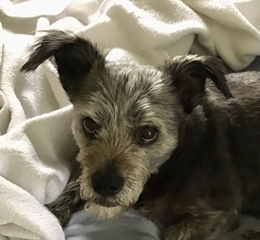 Whenever I change my clothes, Pepper always has to sniff a pant leg. Even with clean clothes, fresh from the dryer, he seems to know what I have planned just by how I’m dressing. If I’m putting on real clothes, he sadly walks to the sunroom and lays down. It’s where he stays when I’m not home. If I put on my walking clothes, his tail starts wagging and he runs back and forth madly until I get his harness and leash. When the flannel pants go on, he jumps onto the bed and settles in….right where I always sit to read, check my email, etc. I have a king sized bed but I always have to encourage him to move, which he will do but only to the foot of the bed where my legs need to go. When my feet are cold, this works to my advantage because he actually likes laying on my feet. He’s a toasty little fur ball!