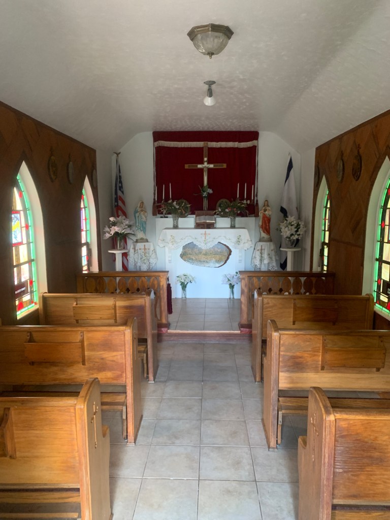 It was the summer before I started high school when I first visited Our Lady of the Pines. Located in the small community of Silver Lake, West Virginia, it sits by a road I’ve traveled many times since. I’m always compelled to stop for a visit when I’m near. Built in 1958, it’s the same age as me! I’m always impressed by how well it’s maintained. Originally built as a memorial, it continues to be cared for with love and devotion.