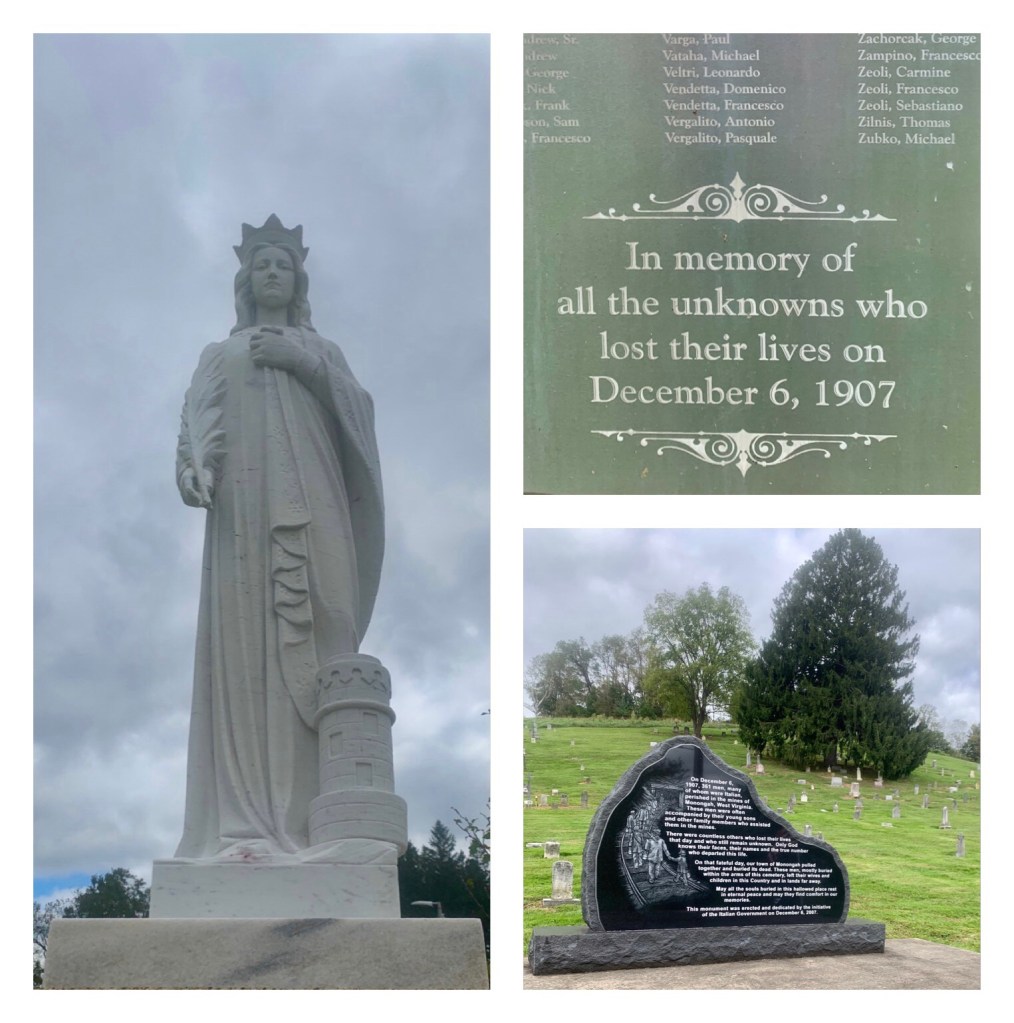 I was attending a meeting at the Marion County Visitors Bureau when I overheard someone talking about miner memorials. My family history includes Irish farmers but mining has not played a significant part in my family culture. Likewise, in a county rich with an Italian heritage, our community was everything but Italian. I knew that there had been several major mining disasters documented in our county history so I decided to do some research, then visit the memorials nearby. I started with the Monongah mine disaster and to say I was shocked by what I learned is an understatement. Even though I’m just a few steps beyond normal, I don’t have the scope to imagine the horrific impact of a disaster of that proportion.