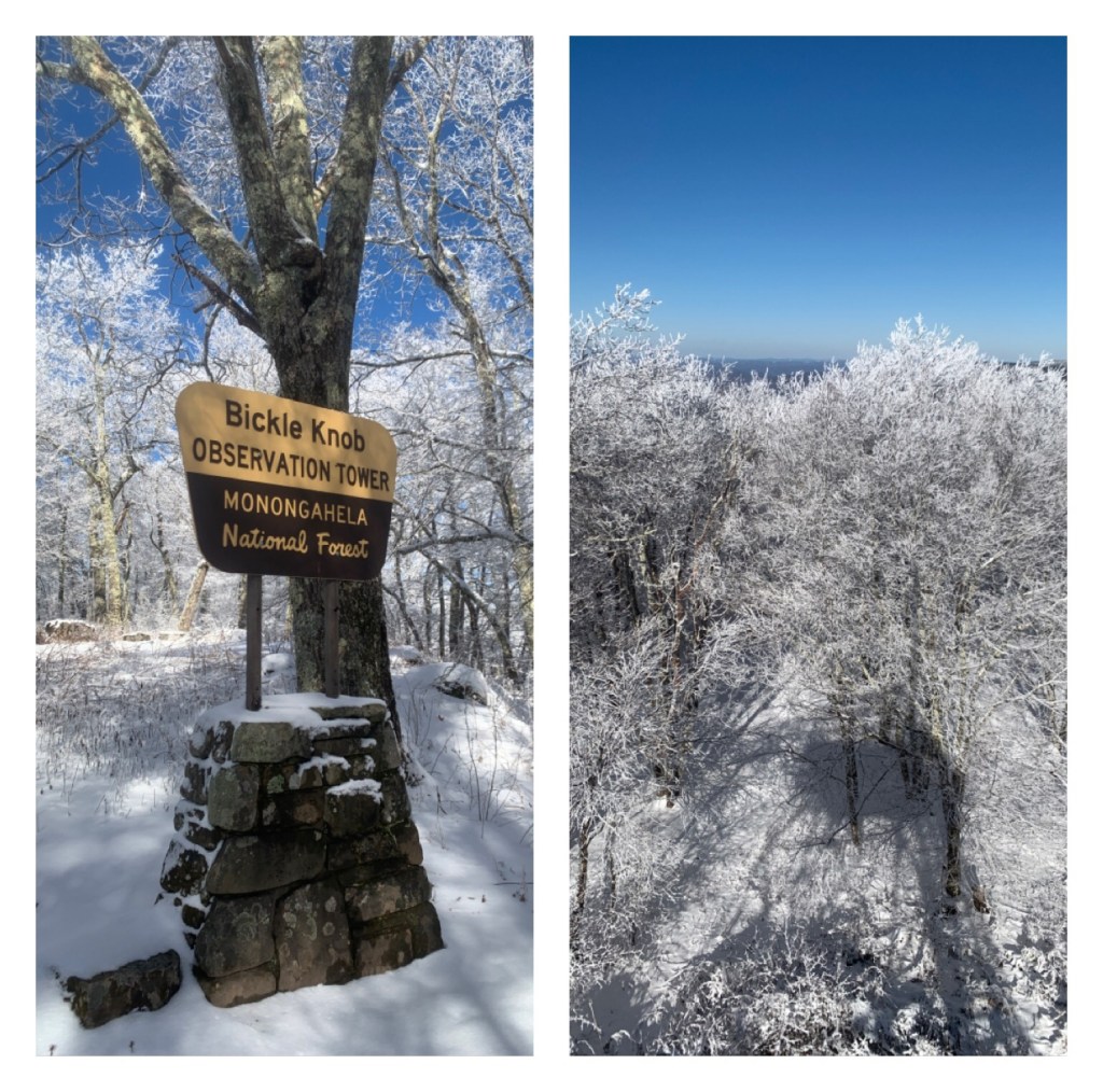 There is something kind of magical about being the first person to walk through a fresh snowfall in a remote location. Jen and I found a winter wonderland on Saturday in the Monongahela National Forest. Standing at 4003 feet above sea level, the Bickle Knob observation platform was a fun climb and the views were incredible.